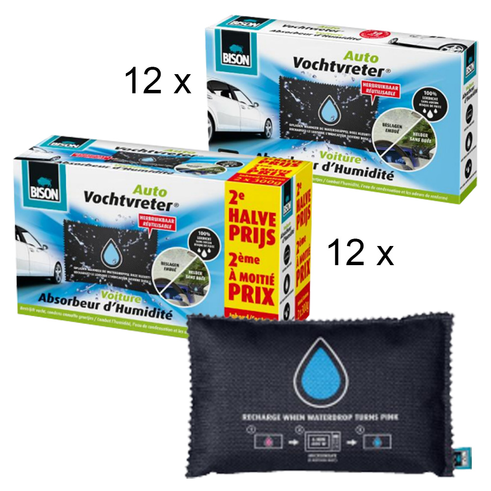 Zakje met vochtvreet korrels die in de auto gelegd kan worden om vocht en condens in de auto op te lossen. Met handige indicator wanneer het zakje gedroogd moet worden. De display bestaat uit 12 x een Vochtvreter Auto 300 gram en 12 x een doosje met een 2e zakje voor de halve prijs