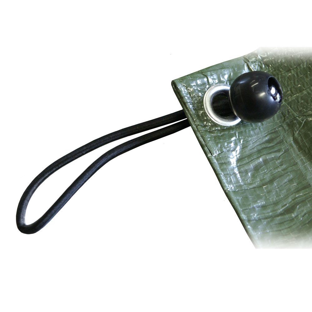 Polyester omvlochten rubber elastiek Ø 5mm met aan uiteinde PE bal Ø 30mm om de dekkleden te bevestigen aan de aanhangwagen.