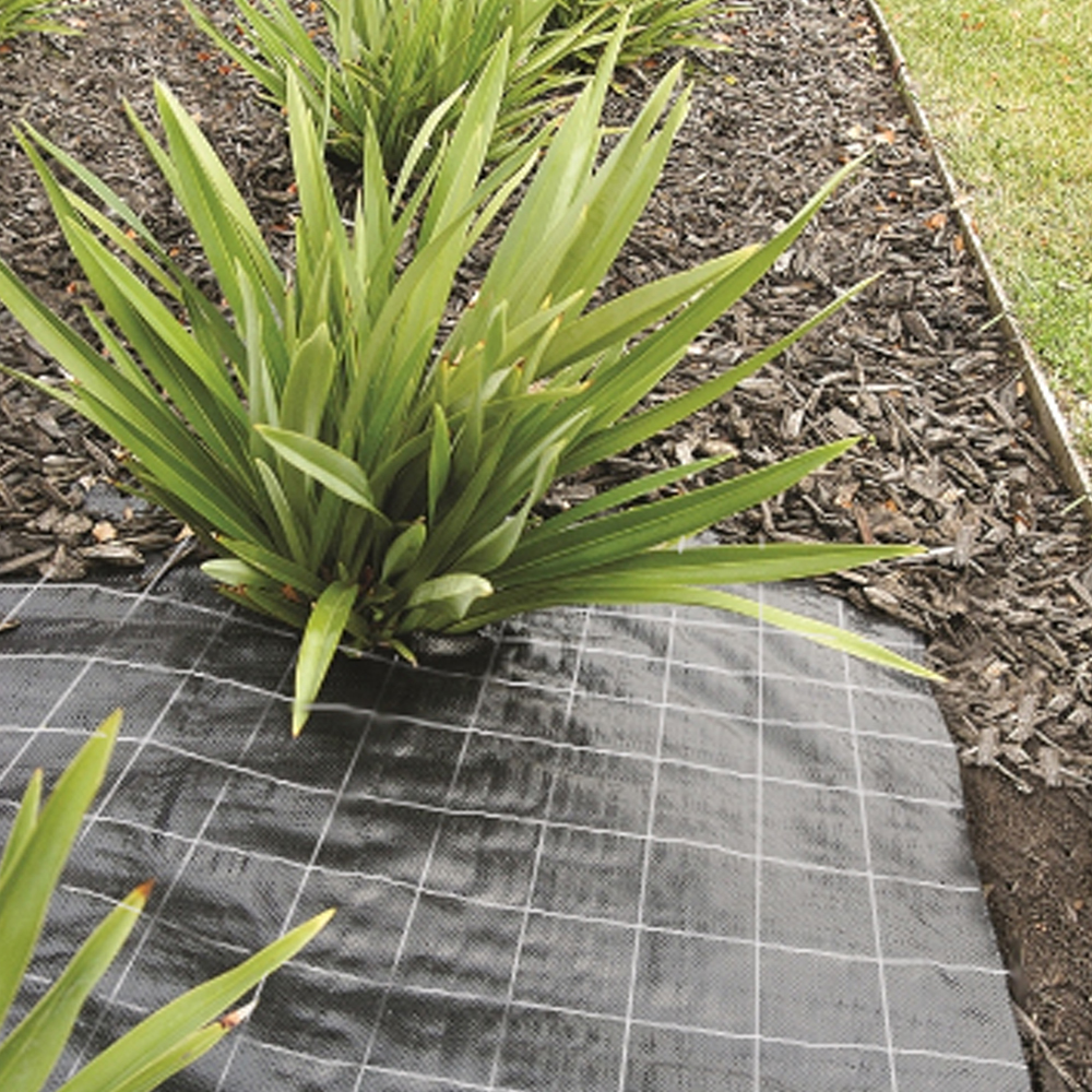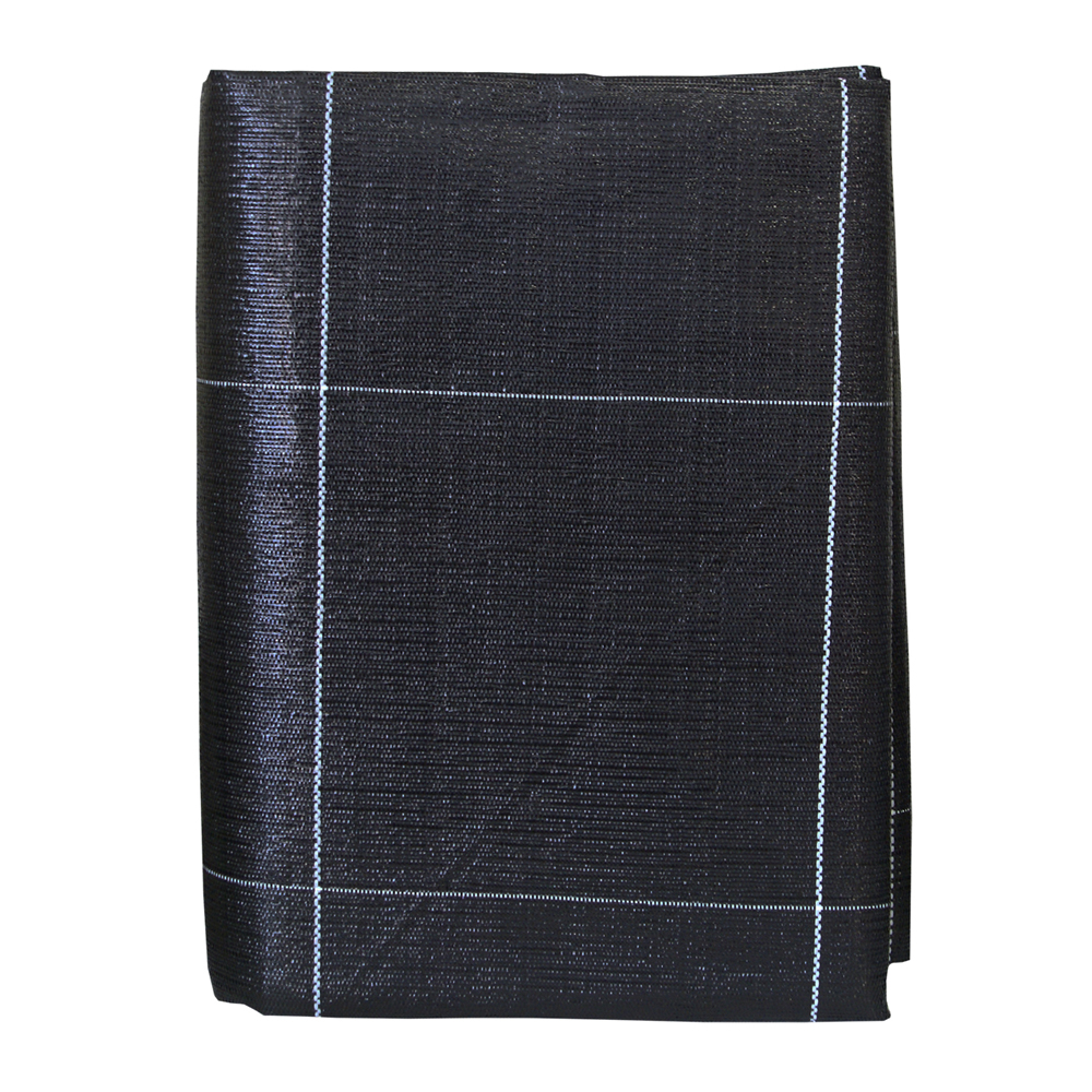 Polypropyleen bandjesweefsel. Anti worteldoek Gronddoek 100 gram in verpakking. Met vakverdeling van 25 x 25 cm. Tegen onkruidgroei van onderaf en voorkomt doorworteling van onkruid.
