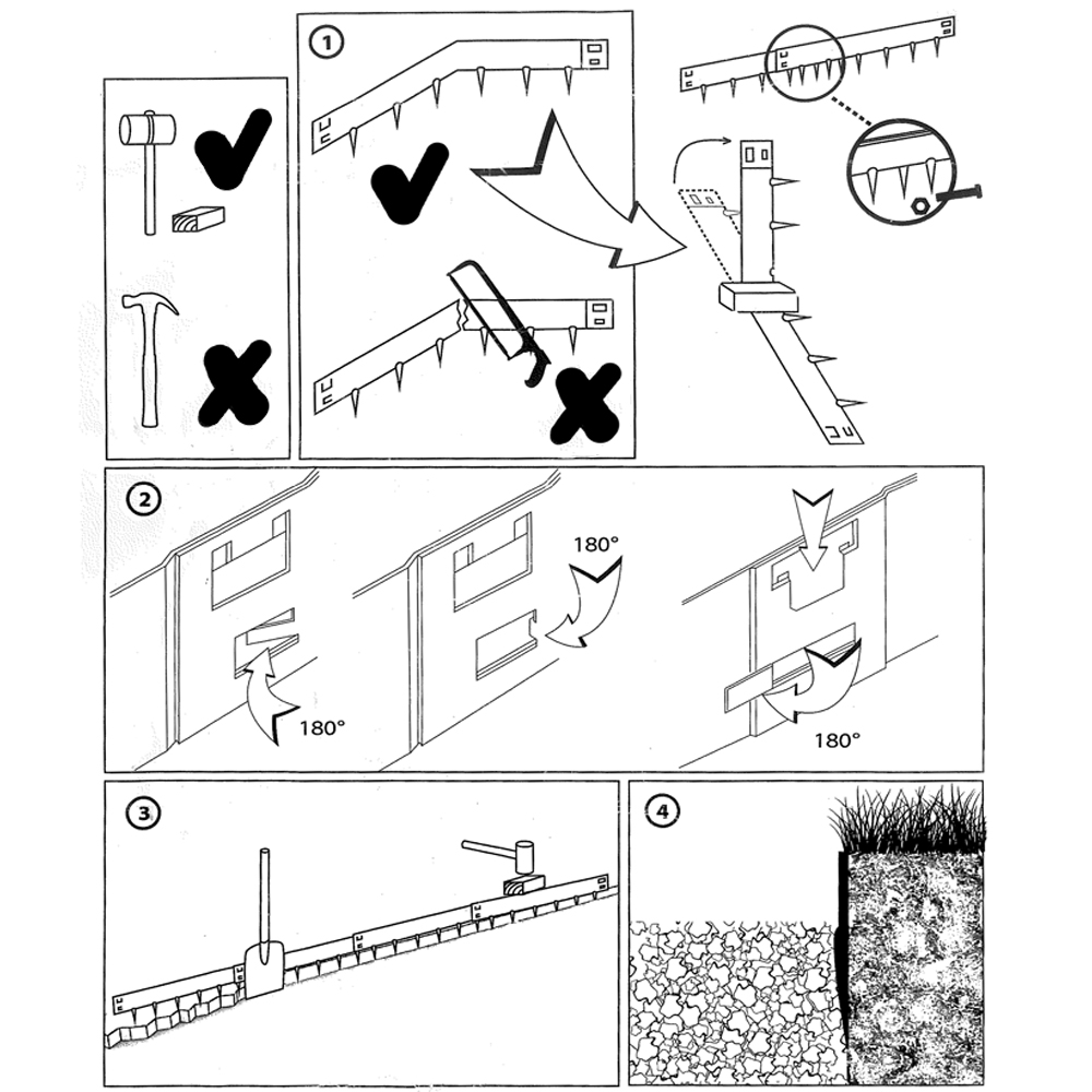 De Kantopsluiting MA Edge is te gebruiken om een mooie strakke borderrand te creeren. Door de punten aan de strips, zijn ze makkelijk en stevig te plaatsen. Makkelijk koppelbaar. De lengte van één strip is 106 cm en werkend 103 cm (twee strips zijn gekoppeld 206 cm). Hoogte van de strip, exclusief punten, 8 cm. Totaal 16 cm. Dikte 1,5 mm. Goed te buigen in een hoek of naar een ronding.