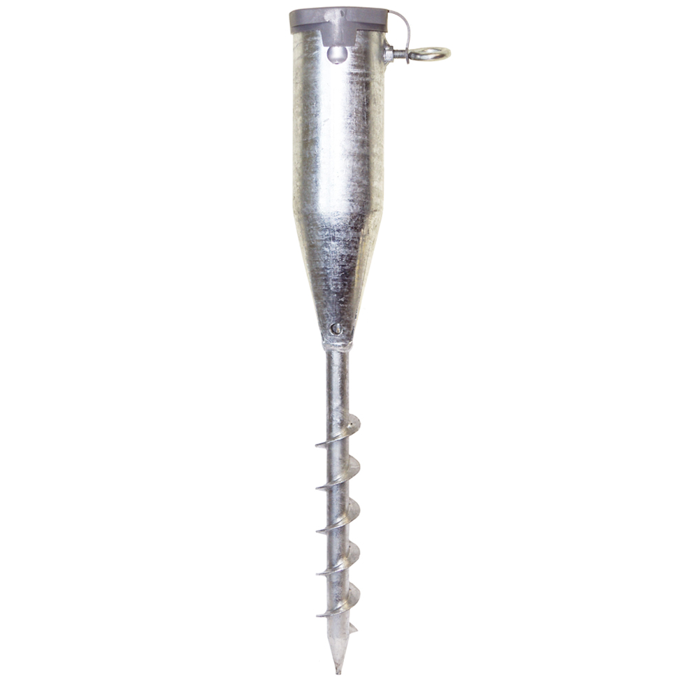 Houder voor o.a.parasol, vlaggenmast of droogmolen. Ook voor bevestiging van sportnetten, het aanlijnen van honden, aanleggen van boten enz. Gegalvaniseerd, Lengte totaal 54,5 cm, Lengte schroef 21,5 cm, Binnendiameter kop 6,31 cm, Materiaaldikte 2 mm. Inclusief draaihevel voor het makkelijker iindraaien. Met 5 passtukken voor verschillende maten palen. Binnendiameter 26, 40, 44, 51 en 57 mm. Tevens voorzien van een vleugelmoer om de paal vast te zetten en een afdekkap om inregenen te voorkomen.