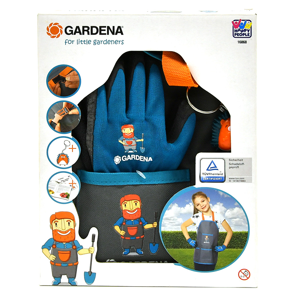 Schort 45x45cm, water- en vuilafstotend. Paar kinderhandschoenen maat 3. (45% polyester, 55% latex) Inclusief sleutelhanger en brochure. Niet voor kinderen jonger dan 3 jaar. CE gekeurd. TUV gecertificeerd ID 1419074883