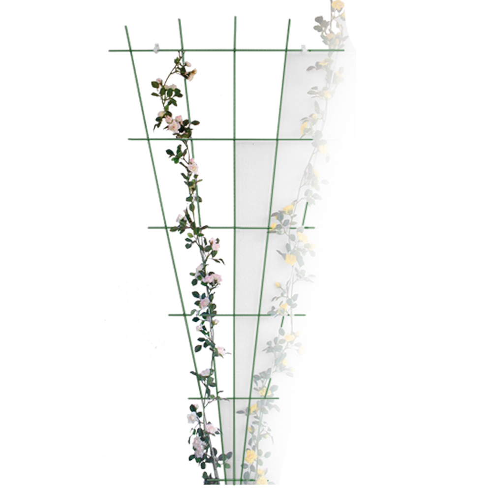 Klimpaneel van groen geplastificeerd metaal in waaiervorm. Inclusief bevestigingsmateriaal; afmeting 150 x 75 cm van Ø 5 mm dikte draad.