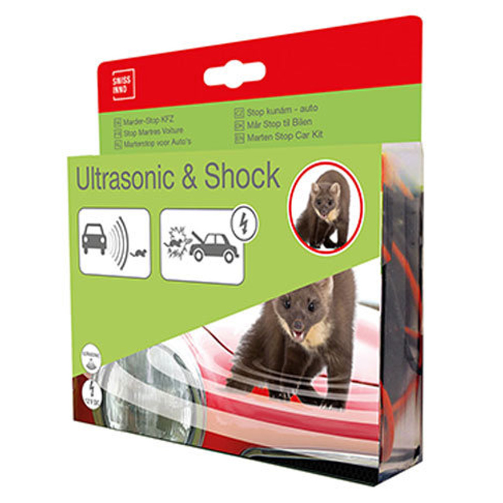 Marter stop: Schrikt marters af door middel van ultrasoon geluid en elektrische schokken. Het geluid is niet hoorbaar voor mensen en onschadelijk voor dieren. Het geluid heeft geen invloed op elektrische apparatuur, waaronder pacemakers, afstandsbedieningen enz. Wordt heel makkelijk op de accu van de auto aangesloten. Waterbestendig.