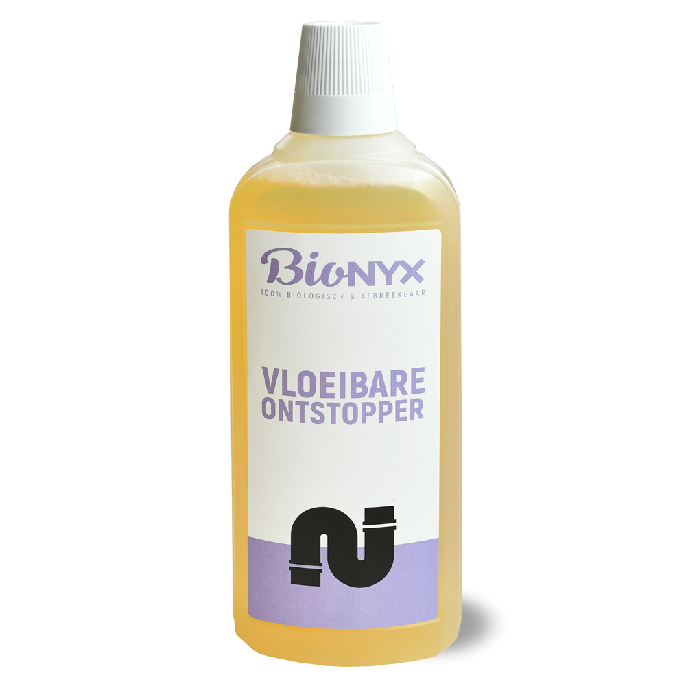 BIOnyx Vloeibare Ontstopper 750 ml. Stank en afvoer verstopt? Zeer ongewenst, maar iedereen krijgt er vroeg of laat mee te maken. Verstoppingen zijn niet van vandaag. Haren, gel of zeepresten zijn hier o.a. de oorzaak van. Haren lossen niet op, gel en zeepresten plakken snel aan de leiding. Te vaak ontstoppingsmiddel, op chemische basis, gebruiken is erg slecht voor je afvoer en je afdichtingringen. En uiteraard ook heel slecht voor het milieu. Er zit vaak zoutzuur en zwavelzuur in. Een eerlijk product op basis van natuurlijke ingrediënten, zonder chemische conserveringsmiddelen is dé oplossing. Spaart én beschermd zo het Milieu. BIOnyx maakt hoogwaardige biologische schoonmaakmiddelen zonder chemicaliën. De natuurlijke bestandsdelen lossen vuil snel op, waardoor alles binnen- én buitenshuis in een handomdraai weer schoon en fris is, én het milieu beschermd blijft! Gebruiksaanwijzing: Giet 50 - 100 ml geconcentreerde BIOnyx Vloeibare Ontstopper (geschikt voor alle afvoeren), in de afvoer. Doe de komende (6-8) uren verder niets. Na deze tijd, laat nu weer water door de afvoer lopen. Herhaal dit 1-2 keer zodat de verstopping helemaal is verdwenen. Ter voorkoming van verstoppingen & nare geuren, herhaal preventief 2-3 maal per maand bij voorkeur s 'avonds. Samenstelling: Niet-ionogene oppervlakteactieve stoffen, polycarboxylaten < 5%. Parfum. Enzymen. Wat maakt BIOnyx zo uniek? *Duurzame leefomgeving *Natuurlijke ingrediënten *Eerlijke prijs en eerlijk product *Veilig en zuinig *Kennis en advies *Groene productie