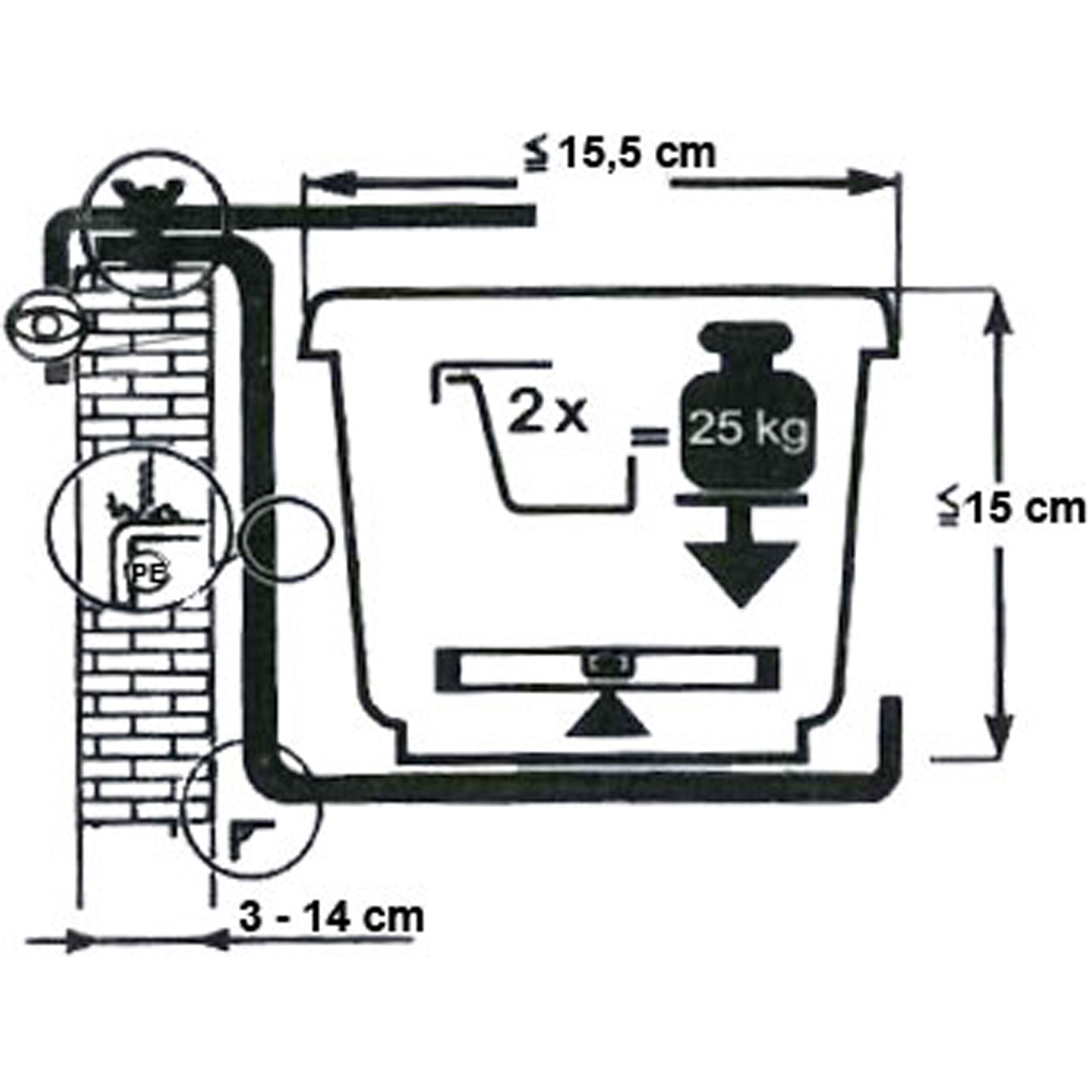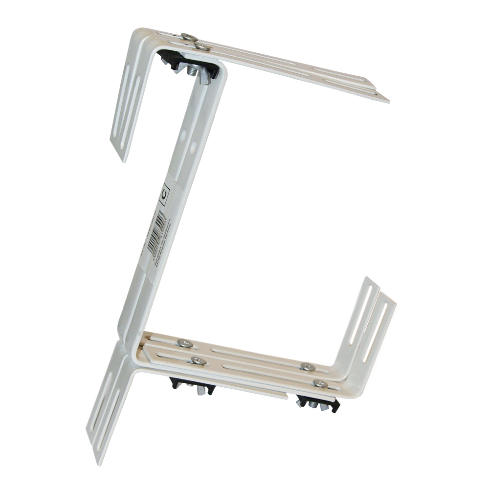 Beugel met verstelbare grootte ondersteun en aanpasbare bovensteun. Maximale bak diepte 15,5 cm.Maximale balkonbak hoogte 17 cm. Railing/muurmaat van 3-14 cm. Met steunhaak onderaan om tegen de railing aan te zetten wanneer bijvoorbeeld het bovendeel van de railing dieper is dan de rest van de wand.. Dit voorkomt dat de balkonbak kantelt. Maximaal 25 kilo in de balkonbak..