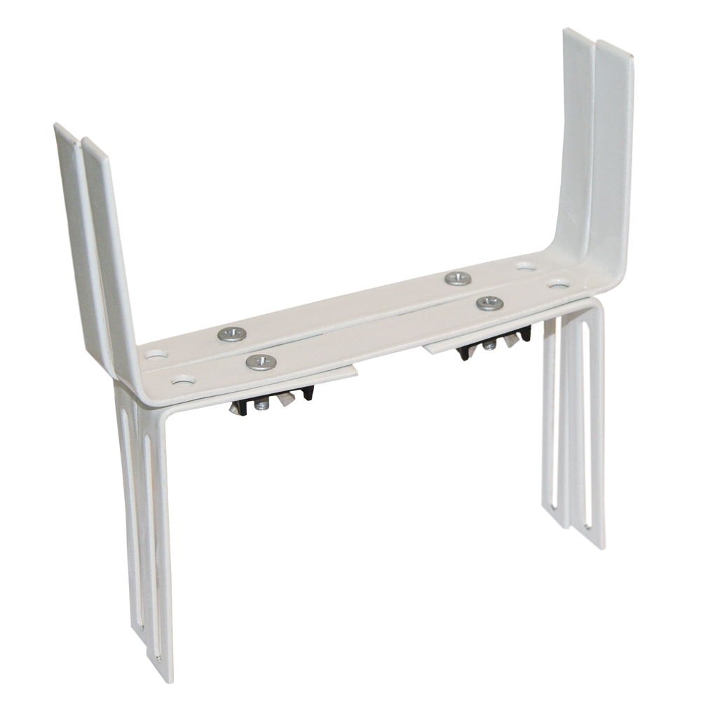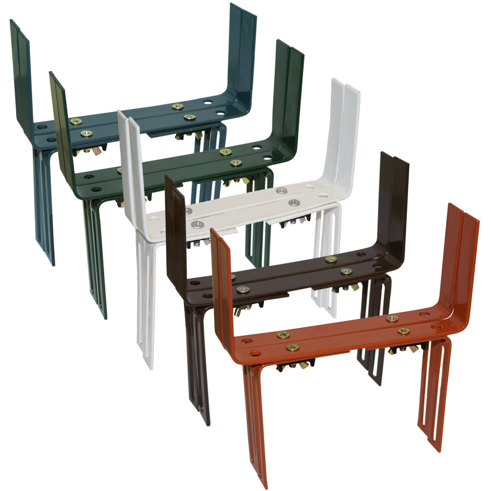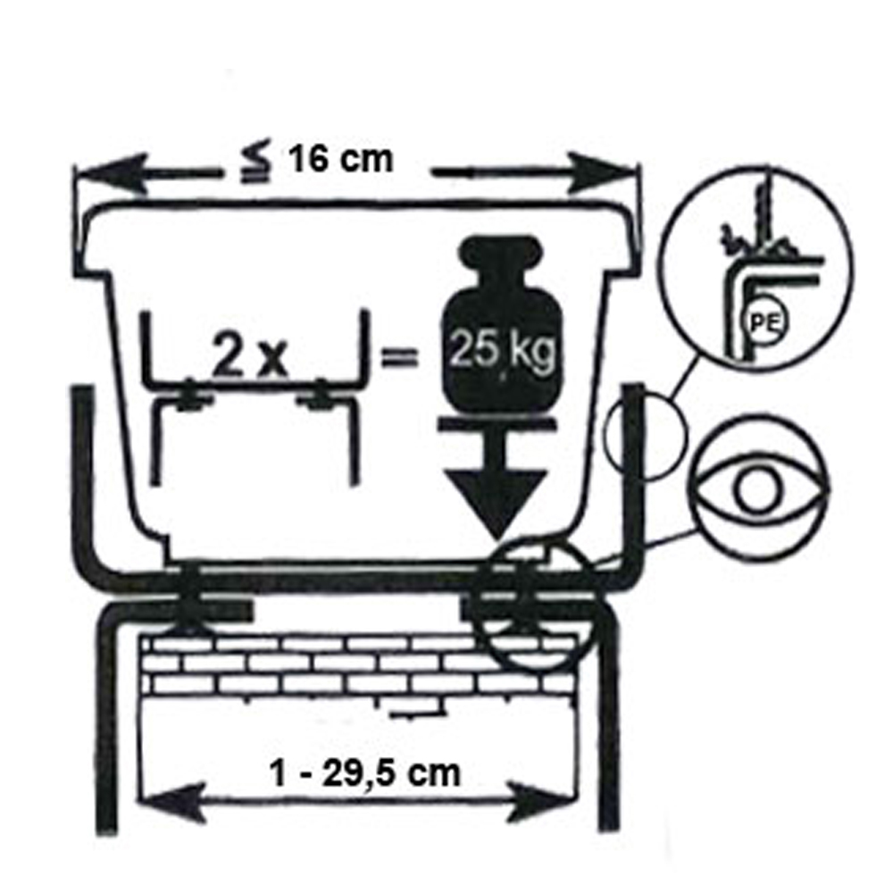 Beugel om de balkonbak op een muur te plaatsen. Maximale muurdikte 29,5 cm. Maximale diepte bak 16 cm. De haken die over de muur gezet worden zijn beide in breedte in te stellen. Maximaal 25 kilo in balkonbak.