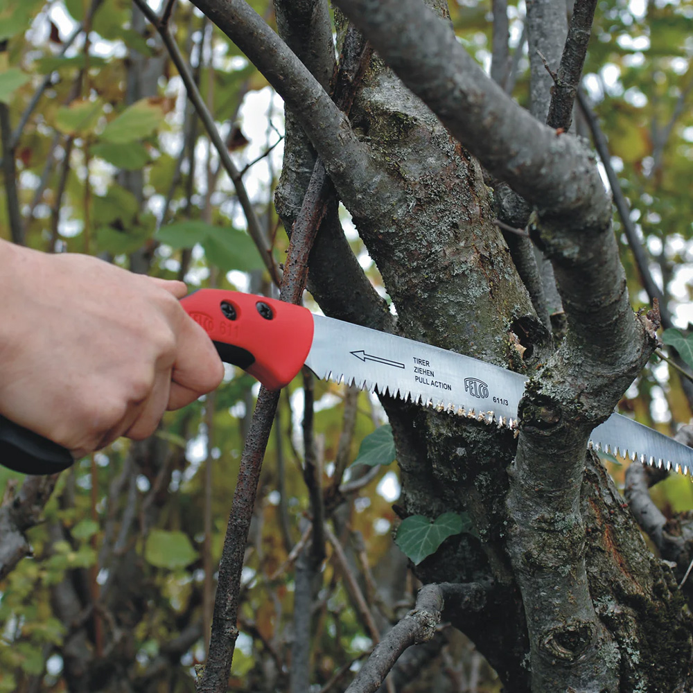 De FELCO 611 trek- en boomzaag levert snel en precies snijwerk op en snijdt door hout zonder aarzelen of vastklemming. Zijn rechte, kegelvormige vorm en langer zaagblad van 33 cm zorgt ervoor dat geen enkele tak buiten bereik is. 560 gram.