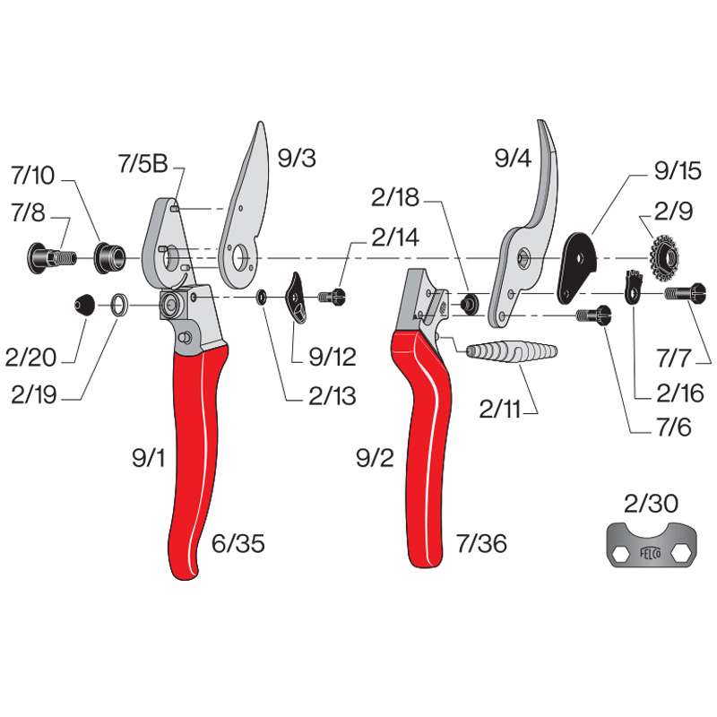 Topprestatie - Ergonomisch - Voor linkshandigen - 25mm/1inch maximale knipopening Betrouwbaarheid: De Felco 9 heeft comfortabele, lichte en stevige handgrepen van gesmeed aluminium met levenslange garantie. Het bovenmes en het geschroefde ondermes zijn uit hoogwaardig gehard staal vervaardigd en maken een nauwkeurige en duidelijke snede. Alle onderdelen kunnen vervangen worden. Doeltreffendheid: De snede, draadsnijder en de sapgoot zijn gemakkelijk en duurzaam ingesteld. Ergonomie: Bescherming van de hand en pols en optimalisatie van de krachten dankzij de ideale vorm van de handgrepen, de gebogen kop en een stootblok inclusief antislip-bekleding.