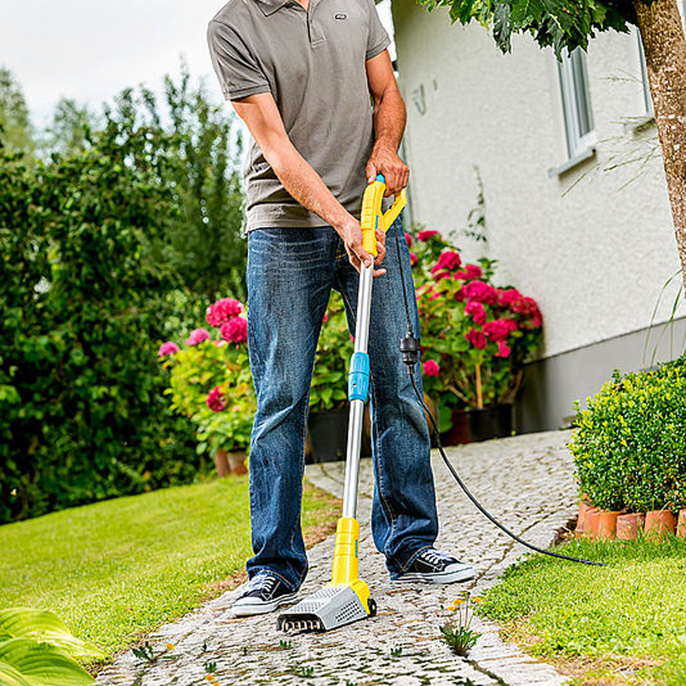 Thermische onkruidbestrijding biedt een effectief alternatief voor chemische onkruidverdelgers om het storende onkruid rond het huis te verwijderen. Er zijn strenge regels voor middelen om onkruid te bestrijden. Er mogen alleen middelen worden gebruikt die daarvoor in Nederland zijn toegelaten. Het gebruik van chemische of biologische middelen zonder toelating zoals chloor, schoonmaakazijn of zout is niet toegestaan. GLORIA biedt hiervoor een effectief alternatief De Thermoflamm bio Fix werkt met een hitte spiraal tot 800° C en is binnen 30 seconden gebruiksklaar. Door het grote stralingsoppervlak van 150 cm² kan er snel gewerkt worden. Zo werkt u met de Thermoflamm bio Fix tot 4 keer sneller dan met bestaande onkruidbranders met losse gasflesjes. Een optimale hittebescherming dankzij een hittebeschermingskap en een reflector van RVS staan garant voor een effectieve behandeling. Houd de Thermoflamm bio onkruidbrander enkele seconden boven het onkruid. Door de hitte gaat het celvocht tot in het wortelgestel klonteren.Het uitzetten van het vocht zorgt ervoor dat de celwanden openbarsten. Binnen enkele dagen droogt de plant vanzelf uit. Direct contact met het onkruid. 800°C hittespiraal. Comfortabele elektrische bediening (230 V, 1.100 W). Snelle werkwijze. 150 cm² werkoppervlakte