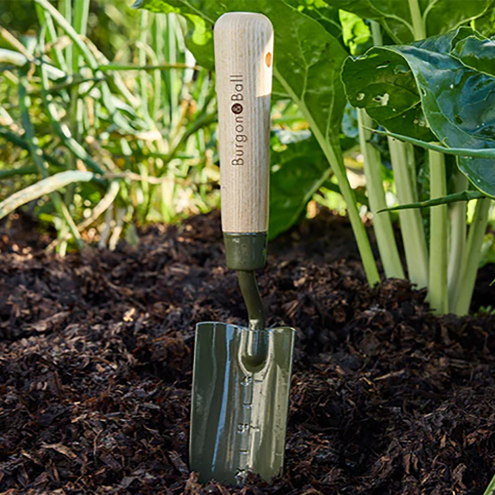 Deze verplanter is slanker dan een gewone tuinschep en is ideaal voor het werken in dichtbeplante borders. De voorkant is gegraveerd met dieptemarkeringen in inches, zodat u precies weet hoe diep u plant – vooral handig voor het planten van bloembollen. De angel (of hals) is nauwkeurig gesmeed in de perfecte hoek voor ergonomisch werken.
