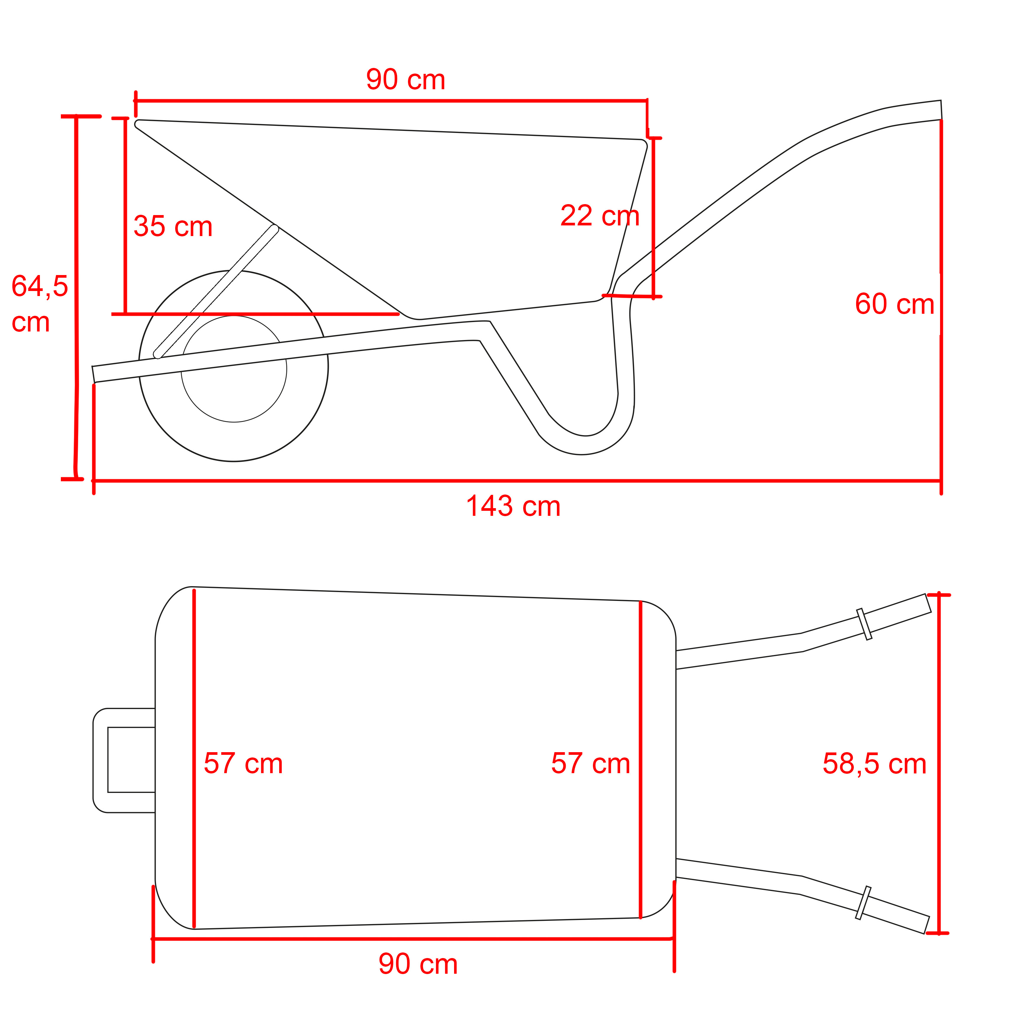 Rondneus stalen bak van 85 liter. Frame van groen gecoate ronde buis en voorzien van slijtsloffen. Wiel 400x8 4ply met kunststof velg, kogellagers en binnenband. Kruiwagen is volledig gecoat in RAL 6009.Draagvermogen 150 kilo.