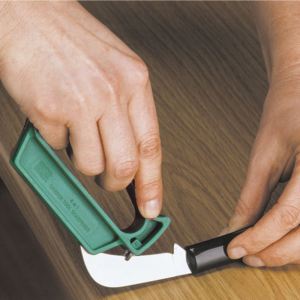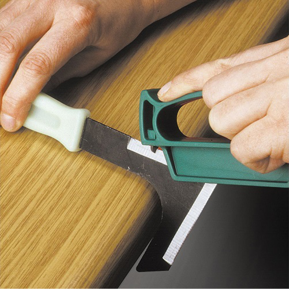 Geeft een scherpe snede aan allerlei soorten messen zoals tegelritsen, snoei- en voorsnijmessen maar ook keukenmessen, zakmessen en rechte snoeischaren. De gediamanteerde wolfraamcarbidschijven zorgen in een paar minuten voor een messcherpe snede. Niet geschikt voor gekartelde messen.