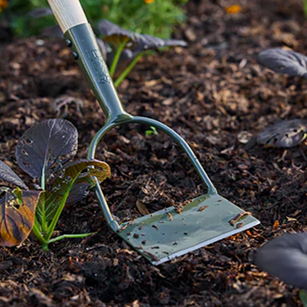 Een klassieke onkruidverwijderaar: deze scherpe Hollandse schoffel snijdt met minimale inspanning door onkruid net onder het oppervlak. Hij stopt onkruid en belucht de grond voorzichtig voor een betere opname van water en voedingsstoffen.