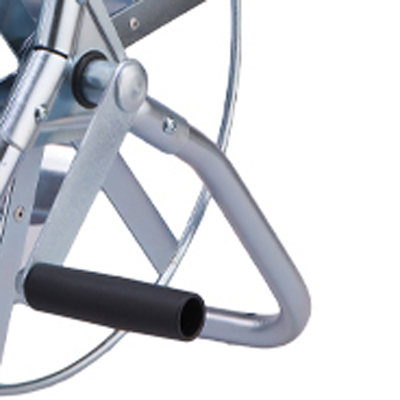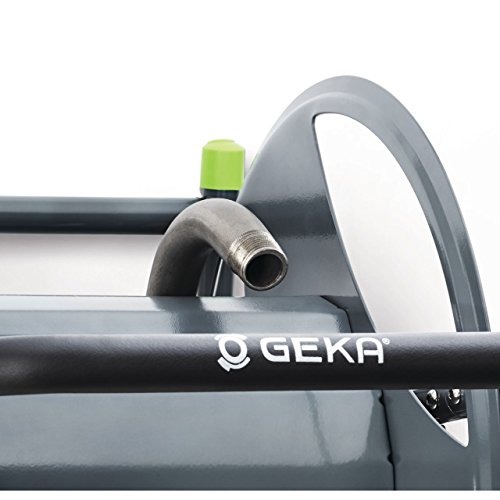 Deze Geka Plus slanghaspel heeft een stevige stalen constructie met een zwart rubberen handgrip. Te gebruiken als staand of wandmodel.